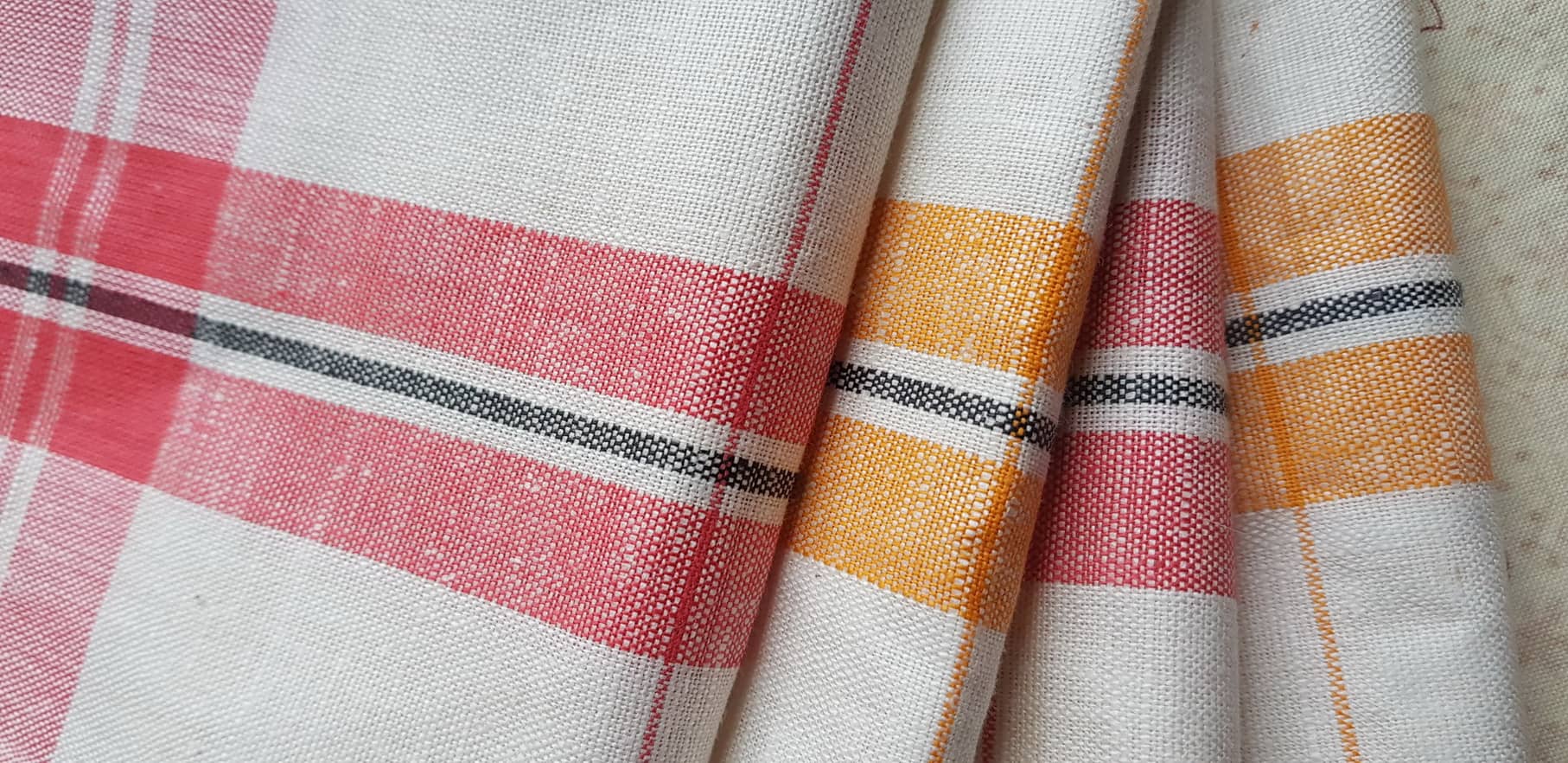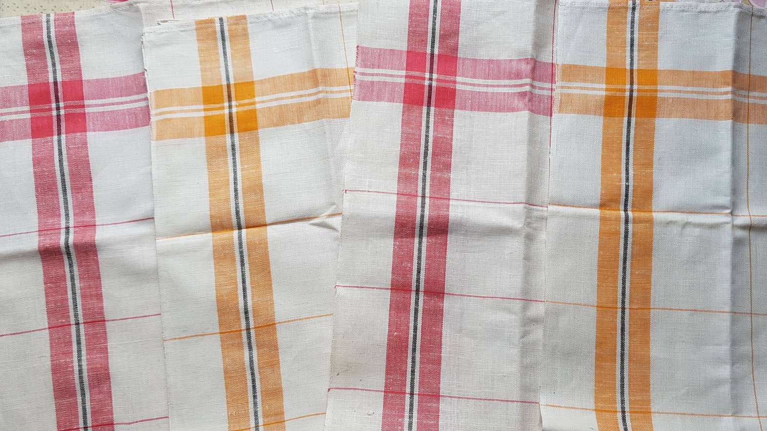 Set of 4 unused metis red and orange checked torchons 52 x 76 mm Perfect as a gift for a friend or to treat oneself